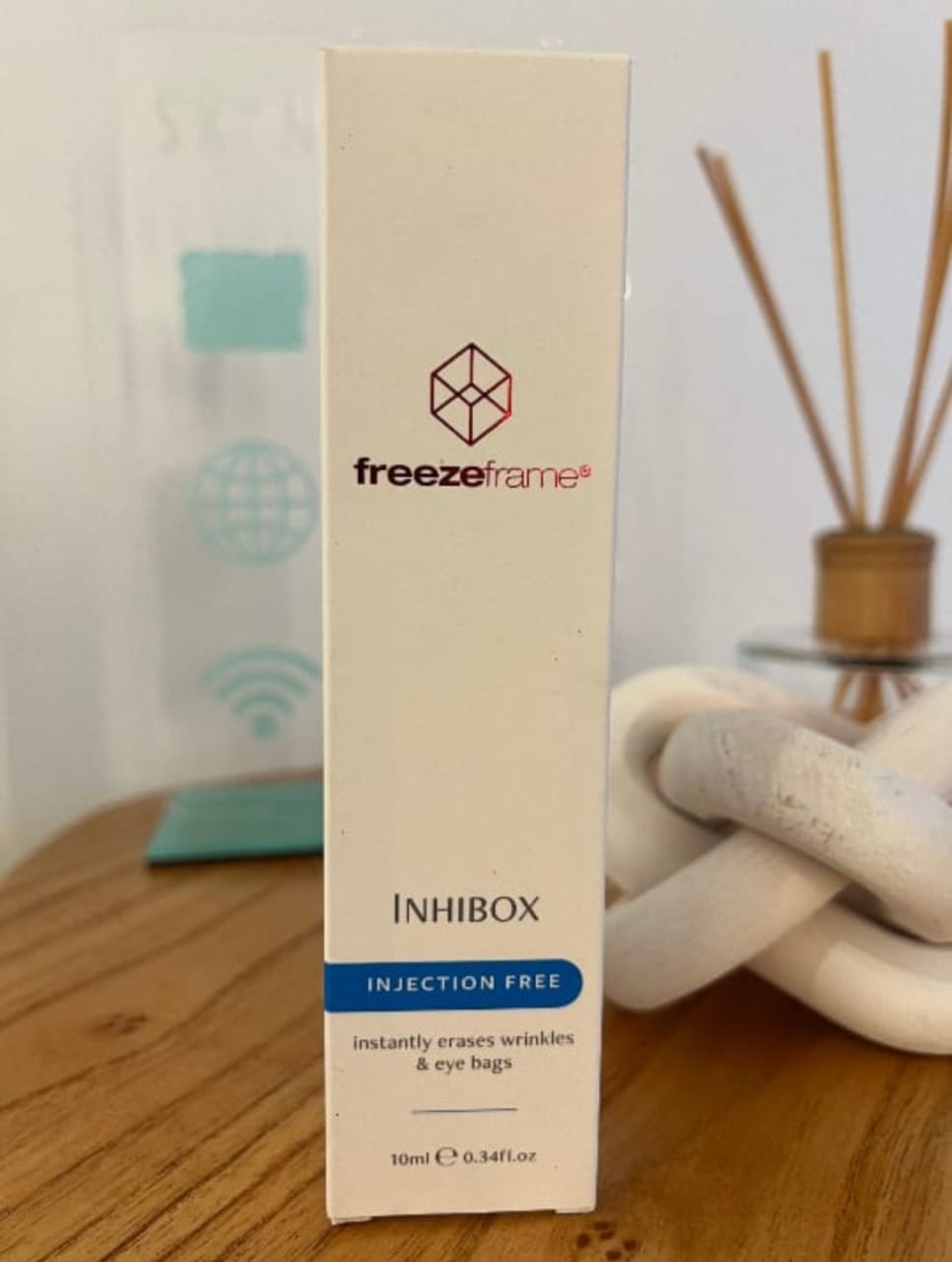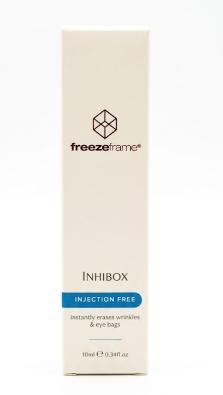 Reezeframe: INHIBOX (Injection Free) Consigue una mirada más joven y descansada de forma instantánea y sin agujas. INHIBOX es un potente sérum diseñado para combatir los signos visibles de fatiga y envejecimiento en la delicada zona del contorno de ojos. Actúa rápidamente para alisar y reafirmar la piel, reduciendo la apariencia de líneas de expresión y bolsas.